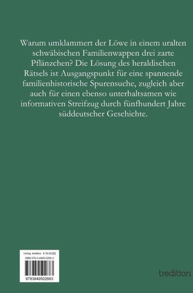 Dieses Buch erzählt die Geschichte eines urschwäbischen Familienstammes, dessen heutige Nachkommen sich entweder "Bun(t)z" oder "Bonz" nennen. Ursprünglich in dem nördlich von Ulm, am Rande der Schwäbischen Alb, gelegenen Dorf Weidenstetten verwurzelt, hat der Stamm im Laufe der Jahrhunderte drei große Familienäste entwickelt. Indem er chronologisch die Entwicklung dieser drei Äste nachzeichnet, schlägt der Autor einen weiten historischen Bogen von den Zeiten der Reformation bis zur Mitte des 20. Jahrhunderts. Mit einer Vielzahl ausführlicher Personenporträts gibt das Buch lebendige Einblicke in den Alltag vergangener Zeiten und ermöglicht unterhaltsame Ausflüge u. a. in das damalige Justizwesen (Reichskammergericht), die Arbeit reichsstädtischer Verwaltungsorgane (am Beispiel von Esslingen) und des Handels (am Beispiel von Ulm).Mit seiner abwechslungsreichen und höchst informativen Zeitreise durch fünf Jahrhunderte süddeutscher Geschichte wendet sich der Autor nicht nur an Familienangehörige und Genealogen. Dank kenntnisreicher Verknüpfung des Familiären mit zeit-, sozial- und glaubensgeschichtlichen Entwicklungen ist "Drey grüne Bentzen" auch eine Fundgrube und ein Gewinn für alle historisch interessierte Leserinnen und Leser. Die sorgfältig recherchierte, reich bebilderte Familiensaga genügt auch wissenschaftlichen Ansprüchen und enthält ausführliche Personen- und Literaturverzeichnisse.
