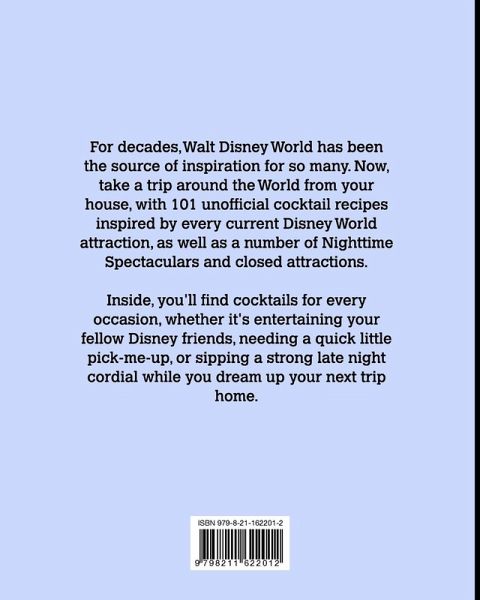For decades, Walt Disney World has been the source of inspiration for so many. Now, take a trip around the World from your house, with 101 unofficial cocktail recipes inspired by every current Disney World attraction, as well as a number of Nighttime Spectaculars and closed attractions. Inside, you'll find cocktails for every occasion, whether it's entertaining your fellow Disney friends, needing a quick little pick-me-up, or sipping a strong late night cordial while you dream up your next trip home.