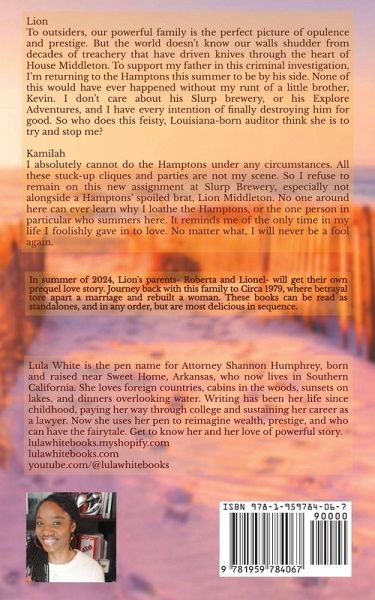 Lion Middleton His family is the oldest in the Black Hamptons, and one of the wealthiest in New England. To outsiders, for decades, they have exemplified black opulence and prestige. But the world doesn't know how decades of betrayal and resentments have driven a wedge through the heart of the Middleton house. Lion returns to the Hamptons this summer to support his father in a possible criminal investigation, and to save his family's reputation. He doesn't care about the Slurp brewery, or Explore Adventures. And he has every intention of finally destroying his brother and nemesis, Kevin. That is, until Lion meets a sultry, feisty Louisiana-born auditor who teaches him that riches and revenge are not everything. Kamilah Rouse The spicy fourth child of the Rouse clan cannot do the Hamptons under any circumstances. A tomboy and free spirit, she's gotten along in life just fine without a man. That is until she's tossed into a summer assignment at Slurp, Explore's new black-owned brewery, with none other than the Hamptons' spoiled divorcèe, Lion Middleton. What no one in her family knows is why she hates the Hamptons, and the one person in particular who summers there. It reminds her of the only time in her life she foolishly gave in to love. No matter what, she'll stay focused on the job, and will never be a fool again. This sensual, heartwarming romance is Book 3 in the Explore Men of the Hamptons series. Follow the accomplished brothers of New York as they revolutionize black luxury travel and leisure in the Hamptons. If you love novels Summer in Sag Harbor, Summer on the Bluffs, or the hit television series Queen Sugar, these are your stories. These books can be read as standalones, and in any order, but are most delicious in sequence.