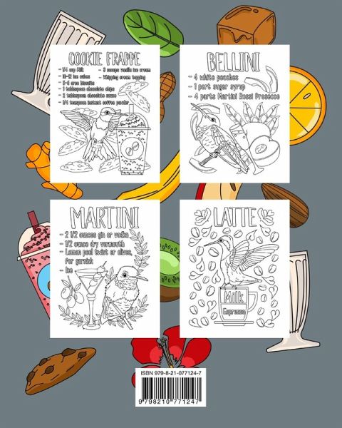 Drinking Hummingbird Coloring Book, Recipes Menu Coffee Cocktail Smoothie Frappe and Drinks, Activity Painting Books for Animal Lovers Spend your free time on creative and relaxing hobbies like drinking and coloring. It is a coloring book and a real recipe book for many drinks such as coffee and cocktail. Even if you are not a drinker, the cute Hummingbird pictures will make you love this book too. Each book has 62 pages, there are blank pages in between designs to ensure that you are not coloring on the back of an image.