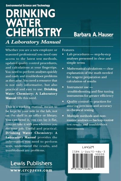 Whether you are a new employee or seasoned professional you need easy access to the latest test methods, updated quality control procedures, and calculations at your fingertips. You need to perform analyses quickly and easily and troubleshoot problems as they arise. You need a resource that is not only informative, but also practical and easy to use. Drinking Water Chemistry: A Laboratory Manual fills this need. The book gives you a thorough overview of the most basic, and therefore important, laboratory topics such as: Laboratory Safety - dos and don'ts based on real experience Sampling - preservation techniques, online sampling, and record keeping Laboratory Instruments - practical use ranges, principles of operation, calibration, conditioning, useful life and replacement, common quality control issues Chemical Use - reagents, standards, indicators, purpose and use, chemical quality and properties, avoidance of contamination, molecular weight calculations Quality Control - replicate analyses, spiked, split, and reference samples, percent recovery of standard, standard deviation, control charts, and everyday quality control measures Weights and Concentrations - care and analytical balances, mathematical conversions among concentration units, dilutions and concentration changes The remaining chapters cover test analysis including: reason for the test, type of sample taken, treatment plant control significance, expected range of results, appropriate quality control procedures, apparatus used, reagents, including function, concentration and instructions for preparation, procedural steps, calculations and notes on possible problems, and references. This is a working manual, meant to be kept by your side in the lab, not on the shelf in an office or library. You can bend it, you can lay it flat, you can take it anywhere you do your job. Useful and practical Drinking Water Chemistry: A Laboratory Manual provides the information you need to perform tests, understand the results, apply them to the determination of water quality before and after treatment, and troubleshoot any problems.
