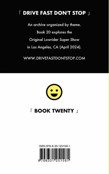 Drive Fast Don't Stop is an archive organized by theme. Book 20 explores the Original Lowrider Super Show in Los Angeles, California (April 2024).