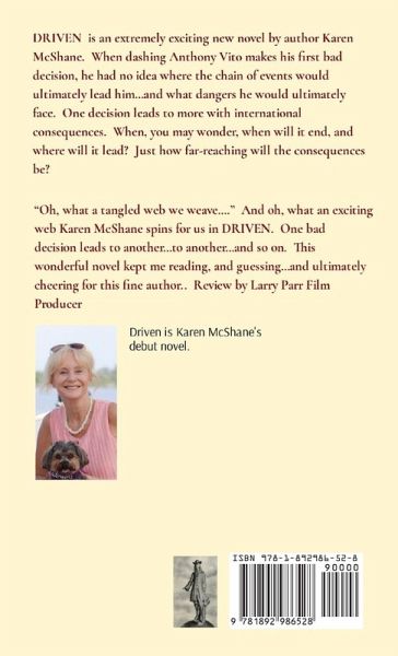 DRIVEN is an extremely exciting new novel by author Karen McShane. When dashing Anthony Vito makes his first bad decision, he had no idea where the chain of events would ultimately lead him...and what dangers he would ultimately face. One decision leads to more with international consequences. When, you may wonder, will the domino effect end, and where will it lead? Just how far-reaching will the consequences be?