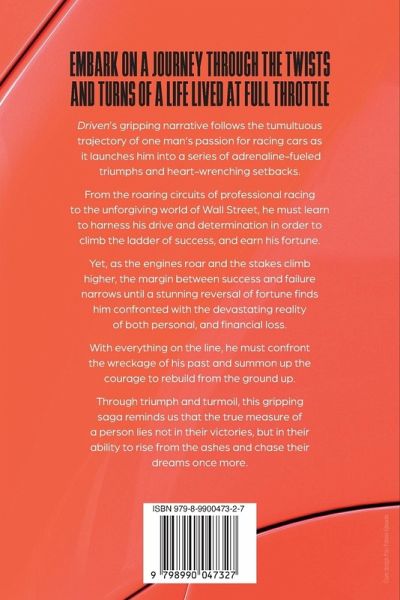 EMBARK ON A JOURNEY THROUGH THE TWISTS AND TURNS OF A LIFE LIVED AT FULL THROTTLE Driven's gripping narrative follows the tumultuous trajectory of one man's passion for racing cars as it launches him into a series of adrenaline-fueled triumphs and heart-wrenching setbacks. At just 17, Joseph Safina founded his first company, setting the stage for an extraordinary life fueled by ambition and proving early on that he was no ordinary teenager. From racing high-performance cars and becoming the first to drive a Lamborghini GTR at the 12 Hours of Sebring, to navigating the intense and unforgiving world of finance, Safina thrived on speed and strategy. Making waves as a Senior Vice President at Gruntal & Co., Safina went on to co-found Nichols, Safina, Lerner & Co., becoming the youngest owner of a broker-dealer in Wall Street history. But Safina's passion didn't stop at the racetrack or trading floor. Venturing into the music industry, he founded five record labels and collaborated with diverse artists, earning himself a wall of gold records. Whether in the fast lane of professional racing or the competitive corridors of finance, his life has been a relentless pursuit of excellence. Yet, as the engines roared and the stakes climbed higher, the margin between success and failure narrowed until a stunning reversal of fortune found him facing the devastating reality of both personal and financial loss. With everything on the line, he was forced to confront the wreckage of his past and summon the courage to rebuild everything from the ground up. A gripping testament to the power of ambition and resilience, Driven reminds us that the true measure of a person lies not in their victories, but in their ability to rise from the ashes and chase their dreams once again. Buckle up for an electrifying real-life adventure that will stay with you long after the final page is turned!