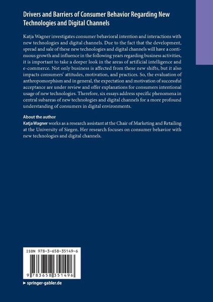 Katja Wagner investigates consumer behavioral intention and interactions with new technologies and digital channels. Due to the fact that the development, spread and sale of these new technologies and digital channels will have a continuous growth and influence in the following years regarding business activities, it is important to take a deeper look in the areas of artificial intelligence and e-commerce. Not only business is affected from these new shifts, but it also impacts consumers' attitudes, motivation, and practices. So, the evaluation of anthropomorphism and in general, the expectation and motivation of successful acceptance are under review and offer explanations for consumers intentional usage of new technologies. Therefore, six essays address specific phenomena in central subareas of new technologies and digital channels for a more profound understanding of consumers in digital environments.