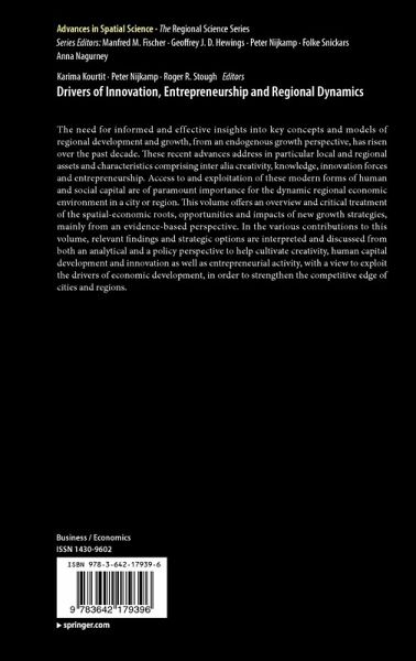 The need for qualitative and effective insights on key concepts and models on regional development and growth, from an endogenous perspective, has increased over the past decade. Their use through, which various assets and their regional and local characteristics are enhanced in the creativity, knowledge and innovation forces and processes of entrepreneurial socio-economic activities, have become of paramount importance in a regional dynamic economic environment in a city or region. This volume provides an overview of their spatial roots, impacts and new establishment survival on evidence-based analysis of (non-)European studies. The results and strategic options are interpreted and discussed from both an analytical and a policy perspective to help cultivate creativity, human capital development and innovation and entrepreneurial activity as drivers of economic development to give a city or region its competitive edge.