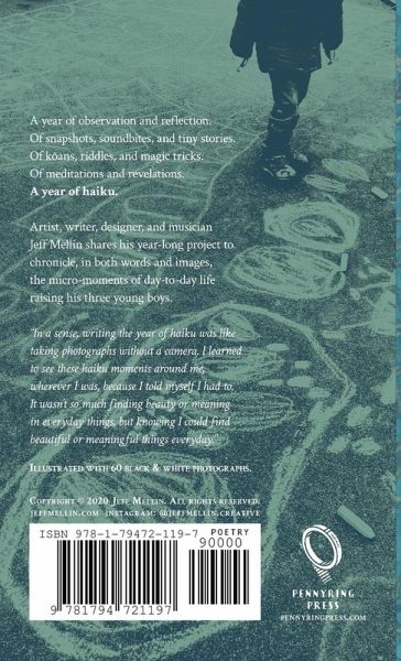 A year of observation and reflection. Of snapshots, soundbites, and tiny stories. Of k¿ans, riddles, and magic tricks. Of meditations and revelations. A year of haiku. Artist, writer, designer, and musician Jeff Mellin shares his year-long project to chronicle, in both words and images, the micro-moments of day-to-day life raising his three young boys. "In a sense, writing the year of haiku was like taking photographs without a camera. I learned to see these haiku moments around me, wherever I was, because I told myself I had to. It wasn't so much finding beauty or meaning in everyday things, but knowing I could find beautiful or meaningful things everyday." Illustrated with 60 black & white photographs.