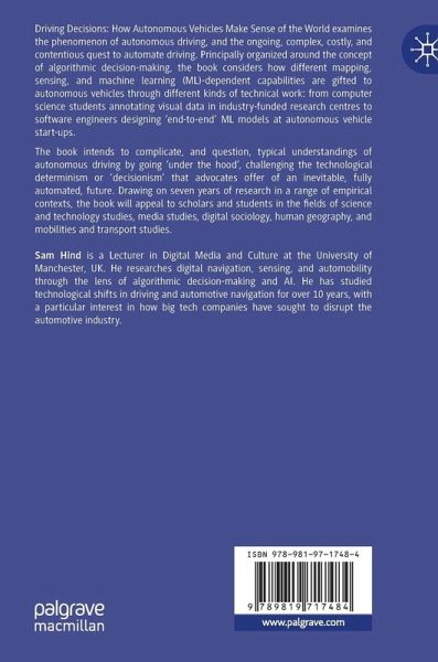 "Driving decisions is an insightful and timely examination of the world of autonomous vehicles. ... The book centers around the concept of algorithmic decision-making ... . The book is grounded in seven years of research and draws from diverse fields like media studies, science and technology studies (STS), and digital geography. Its strength lies in its methodical, behind-the-scenes look at how decisions are crafted--not made--by both humans and machines." (R. S. Chang, Computing Reviews, April 30, 2025)