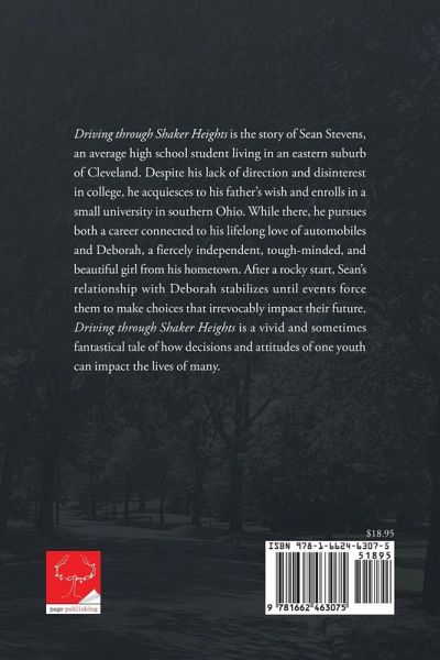 Driving through Shaker Heights is the story of Sean Stevens, an average high school student living in an eastern suburb of Cleveland. Despite his lack of direction and disinterest in college, he acquiesces to his father's wish and enrolls in a small university in southern Ohio. While there, he pursues both a career connected to his lifelong love of automobiles and Deborah, a fiercely independent, tough-minded, and beautiful girl from his hometown. After a rocky start, Sean's relationship with Deborah stabilizes until events force them to make choices that irrevocably impact their future. Driving through Shaker Heights is a vivid and sometimes fantastical tale of how decisions and attitudes of one youth can impact the lives of many.