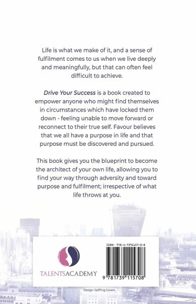Life is what we make of it, and a sense of fulfilment comes to us when we live deeply and meaningfully, but that can often feel difficult to achieve. Drive Your Success is a book created to empower anyone who might find themselves in circumstances which have locked them down - feeling unable to move forward or reconnect to their true self. Favour believes that we all have a purpose in life and that purpose must be discovered and pursued. This book gives you the blueprint to become the architect of your own life, allowing you to find your way through adversity and toward purpose and fulfilment; irrespective of what life throws at you.