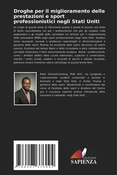 Lo scopo di questo testo di riferimento pratico è quello di essere una fonte di facile consultazione sia per i professionisti che per gli studiosi sulle applicazioni e gli impatti delle normative sui farmaci per il miglioramento delle prestazioni (PED) negli sport professionistici degli Stati Uniti. Studiosi come laureandi, laureati e professori specializzati in Amministrazione e gestione dello sport, Finanza ed economia dello sport, Business ed eventi sportivi, Gestione del tempo libero e della ricreazione e altre sottodiscipline correlate troveranno il libro estremamente prezioso. Anche i professionisti, come i direttori atletici delle scuole elementari, superiori e universitarie, nonché i centri privati, pubblici e no-profit di parchi e attività ricreative, potranno trovare immenso valore nell'utilizzo di questo breve libro.