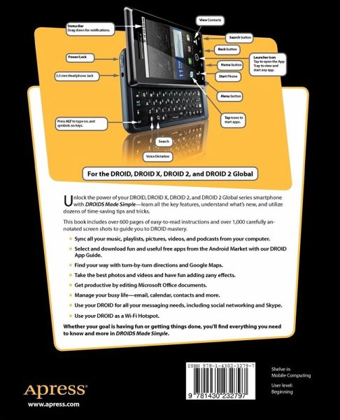 With hundreds of annotated screenshots and step-by-step directions, Droids Made Simple will transform you into a Droid expert, improving your productivity, and most importantly, helping you take advantage of all of the cool features that come with these powerful smartphones.