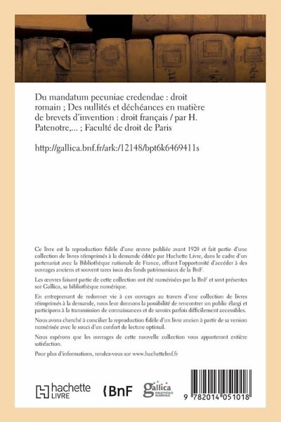 Le présent ouvrage s'inscrit dans une politique de conservation patrimoniale des ouvrages de la littérature Française mise en place avec la BNF. HACHETTE LIVRE et la BNF proposent ainsi un catalogue de titres indisponibles, la BNF ayant numérisé ces oeuvres et HACHETTE LIVRE les imprimant à la demande. Certains de ces ouvrages reflètent des courants de pensée caractéristiques de leur époque, mais qui seraient aujourd'hui jugés condamnables. Ils n'en appartiennent pas moins à l'histoire des idées en France et sont susceptibles de présenter un intérêt scientifique ou historique. Le sens de notre démarche éditoriale consiste ainsi à permettre l'accès à ces oeuvres sans pour autant que nous en cautionnions en aucune façon le contenu. Pour plus d'informations, rendez-vous sur www.hachettebnf.fr
