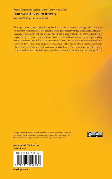This open access, interdisciplinary book presents innovative strategies in the use of civil drones in the cultural and creative industry. Specially aimed at small and medium-sized enterprises (SMEs), the book offers valuable insights from the fields of marketing, engineering, arts and management. With contributions from experts representing varied interests throughout the creative industry, including academic researchers, software developers and engineers, it analyzes the needs of the creative industry when using civil drones both outdoors and indoors. The book also provides timely recommendations to the industry, as well as guidance for academics and policymakers.