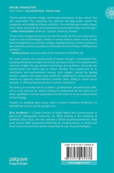 This book explores the evolving world of drones through a multifaceted lens, revealing their profound impact on society and visual culture. The comprehensive collection bridges the gap between technology and aesthetics, dissecting the transformative role drones play in various domains, from cinema and art to surveillance and environmental sensing. Each chapter, penned by leading scholars, explores the unique ways drones are redefining our visual landscape, whether in capturing unprecedented cinematic shots, aiding in critical rescue missions, or offering new perspectives in artistic endeavours.