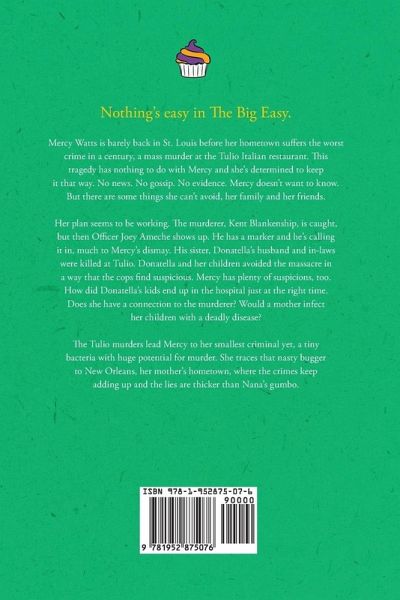 Nothing's easy in The Big Easy. Mercy Watts is barely back in St. Louis before her hometown suffers the worst crime in a century, a mass murder at the Tulio Italian restaurant. This tragedy has nothing to do with Mercy and she's determined to keep it that way. No news. No gossip. No evidence. Mercy doesn't want to know. But there are some things she can't avoid, her family and her friends. Her plan seems to be working. The murderer, Kent Blankenship, is caught, but then Officer Joey Ameche shows up. He has a marker and he's calling it in, much to Mercy's dismay. His sister, Donatella's husband and in-laws were killed at Tulio. Donatella and her children avoided the massacre in a way that the cops find suspicious. Mercy has plenty of suspicions, too. How did Donatella's kids end up in the hospital just at the right time. Does she have a connection to the murderer? Would a mother infect her children with a deadly disease? The Tulio murders lead Mercy to her smallest criminal yet, a tiny bacteria with huge potential for murder. She traces that nasty bugger to New Orleans, her mother's hometown, where the crimes keep adding up and the lies are thicker than Nana's gumbo.