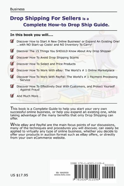 Drop Shipping For Sellers is a Complete How-to Drop Ship Guide. This book is a Complete Guide to help you start your very own successful online business, or help you expand an existing one, while taking advantage of the many benefits that only Drop Shipping can offer. While eBay and PayPal are the main focus points of our discussions, many of the techniques and procedures you will discover, can easily be applied to virtually any type of online business, whether you decide to offer your products in auction format such as eBay offers, or directly from your own eCommerce website. No Other Product is as comprehensive. And No Other Product offers as much practical information on how to get started, and how to succeed in your own eBay/Online/Dropship Business as this Book does.