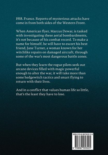 It only took a few years to turn airplanes into weapons. Magic would never be the same. 1918. France. Reports of unexplained rogue attacks have come in from both sides of the Western Front. When Marcus Dewar is tasked with investigating the aerial bombardments, it's not because of his aviation record. To make a name for himself, he will have to escort his best friend, a woman named Jane Turner known for her witchlike repairs on damaged aircraft, through some of the war's most dangerous battle zones. But when they learn the rogue pilots seek out arcane devices filled with magic powerful enough to alter the war, it will take more than some hedgewitch tactics and smart flying to return with their lives. And in a conflict that values human life so little, that's the least they have to lose.