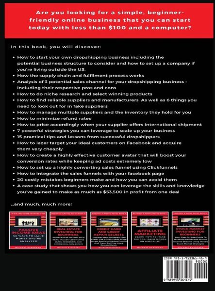 Are you looking for a simple, beginner-friendly online business that you can start today with less than $100 and a computer? How many times have you started a business only to later realise you had to spend a fortune to get the products manufactured, hold inventory and eventually ship the products to customers all over the globe? Would you like to start your very own e-commerce business that gets right to making money without having to deal with all of the above issues? Dropshipping can be very attractive because it helps to minimize all the above risk and cost while offering convenience and practicality. Amazon bestselling author, Michael Ezeanaka, provides a step-by-step analysis of the Dropshipping business model, how to get started, the players involved, what to do and what to avoid, and most importantly, how to scale up your business to $10,000 per month. This boxset consists of 2 of the author's best selling books namely: Dropshipping - Your Step-By-Step Guide To Make Money Online And Build A Passive Income Stream Using The Dropshipping Business Model (3.99) Facebook Advertising - Facebook Advertising: Your Step-By-Step Guide To Generating Quality Leads, Sales And Profits For Your Business At A Very Affordable Cost (3.99) In Part I of this book: Dropshipping, You'll Discover: How to start your own dropshipping business including the potential business structure to consider and how to set up a company if you’re living outside the US, How the supply chain and fulfilment process works Analysis of 3 potential sales channel for your dropshipping business - including their respective pros and cons How to do niche research and select winning products How to find reliable suppliers and manufacturers. As well as 6 things you need to look out for in fake suppliers How to manage multiple suppliers and the inventory they hold for you How to minimize refund rates How to price accordingly when your supplier offers international shipment 7 powerful strategies you can leverage to scale up your business 15 practical tips and lessons from successful dropshippers In Part II of this book: Facebook Advertising, You'll Discover: How to lazer target your ideal customers on Facebook and acquire them very cheaply How to create a highly effective customer avatar that will boost your conversion rates while keeping ad costs extremely low How to set up a highly converting sales funnel using Clickfunnels How to integrate the sales funnels with your facebook page How to create irresistable lead magnets How to set up profitable Instragram Ads 20 costly mistakes beginners make and how you can avoid them A case study that shows you how you can leverage the skills and knowledge you’ve gained to make as much as $53,500 in profit from one deal …and much, much more! If you're ready to take charge of your financial future, scroll to the top of the page and click the "BUY NOW" button!