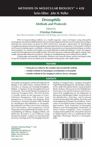 Drosophila melanogaster has been the model system of choice for many inv- tigators over the past hundred years. Due to its long-standing tradition as a model organism, many techniques used in Drosophila have been established and c- tinue to be developed to answer a variety of scientific questions. The recent inv- tion of techniques allowing the knock-down of genes by RNA interference and gene replacement by homologous recombination are two important demonst- tions of the ongoing efforts to broaden the technical repertoire at hand for researchers working with Drosophila. This volume is a collection of protocols covering both standard techniques as well as novel methods. An introductory chapter highlights the importance of Drosophila as a model system for the dev- opment of Biology in the 20th century and review chapters provide concise and up-to-date overviews on selected experimental systems. This book makes no attempt to be comprehensive. A number of frequently used standard techniques were selected and are described in-depth to allow novices to get started with Drosophila. In addition, detailed protocols of recently developed methods that we felt will become of broad use in the Drosophila community within the next years are included. I am grateful to Konrad Basler, Suzanne Eaton, Elisabeth Knust, Pavel Tomancak, and Andreas Wodarz for alerting me to novel techniques and for their advice on selecting the protocols for this book. I would also like to thank all the authors for their expert contribution to this Volume. Christian Dahmann v Contents Preface . . . . . . . . . . . . . . . . . . . . . . . . . . . . . . . . . . . . . . . . . . . . . . . . . . . . . . . . . . . . . . . . . . . . . . . . . . . . . . . . . . . . . . . . . . . . . . . . . . . . . . . . . . . . . .. .