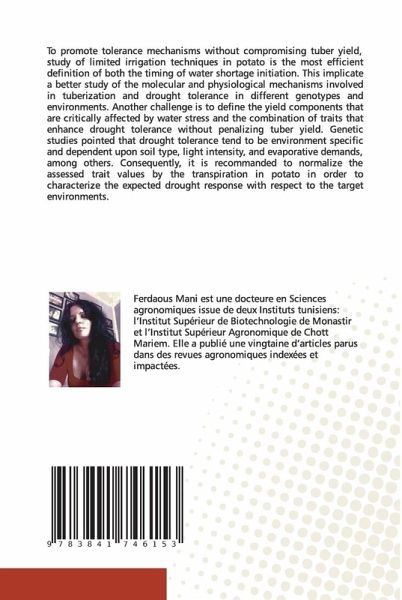 To promote tolerance mechanisms without compromising tuber yield, study of limited irrigation techniques in potato is the most efficient definition of both the timing of water shortage initiation. This implicate a better study of the molecular and physiological mechanisms involved in tuberization and drought tolerance in different genotypes and environments. Another challenge is to define the yield components that are critically affected by water stress and the combination of traits that enhance drought tolerance without penalizing tuber yield. Genetic studies pointed that drought tolerance tend to be environment specific and dependent upon soil type, light intensity, and evaporative demands, among others. Consequently, it is recommanded to normalize the assessed trait values by the transpiration in potato in order to characterize the expected drought response with respect to the target environments.