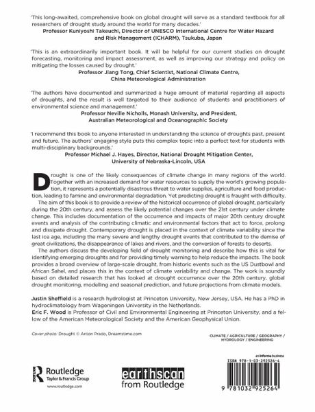 Drought is one of the likely consequences of climate change in many regions of the world. Together with an increased demand for water resources to supply the world's growing population, it represents a potentially disastrous threat to water supplies, agriculture and food production, leading to famine and environmental degradation. Yet predicting drought is fraught with difficulty. The aim of this book is to provide a review of the historical occurrence of global drought, particularly during the twentieth century and assess the likely potential changes over the twenty-first century under climate change. This includes documentation of the occurrence and impacts of major twentieth century drought events and analysis of the contributing climatic and environmental factors that act to force, prolong and dissipate drought. Contemporary drought is placed in the context of climate variability since the last ice age, including the many severe and lengthy drought events that contributed to the demise of great civilizations, the disappearance of lakes and rivers, and the conversion of forests to deserts. The authors discuss the developing field of drought monitoring and seasonal forecasting and describe how this is vital for identifying emerging droughts and for providing timely warning to help reduce the impacts. The book provides a broad overview of large scale drought, from historic events such as the US Dust Bowl and African Sahel, and places this in the context of climate variability and change. The work is soundly based on detailed research that has looked at drought occurrence over the twentieth century, global drought monitoring, modeling and seasonal prediction, and future projections from climate models.