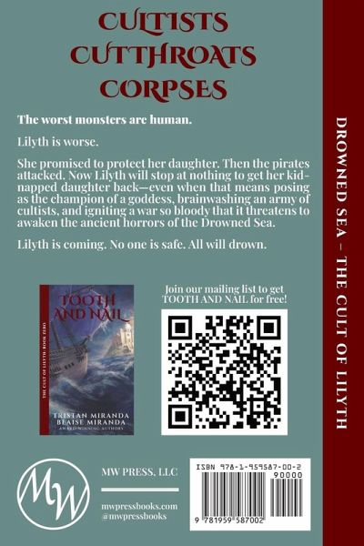 Game of Thrones meets Pirates of the Caribbean in this thrilling tale of war, revenge, and adventure on the high seas! Lilyth the Red, an elite assassin, made a promise to her family. She failed to keep it. Now, she will stop at nothing to hunt down the pirates who wronged her-even posing as the champion of a goddess, brainwashing an army of cultists, and igniting a war so ruthless that it threatens to awaken the ancient horrors of the Drowned Sea. Erin Rose, a street urchin, only ever cared about picking pockets with her father. But that's no longer an option. Alone, the price of survival is costly, paid in flesh and brutality. The only question is whose blood will be on her hands: her own or her newfound friends. First Mate Jameson, a pirate-turned-storyteller, left a life of violence behind him. Or so he'd thought. But life on the sea is crueler than it has ever been. Trapped between sea monsters, cultists, and pirates, Jameson's stories might be his only salvation-and the ruin of the gods. War ravages the Drowned Sea, monsters rise from its depths, and heroes drown in them. In this world where land is sparse and gunpowder rules the sea, only the villains will survive.