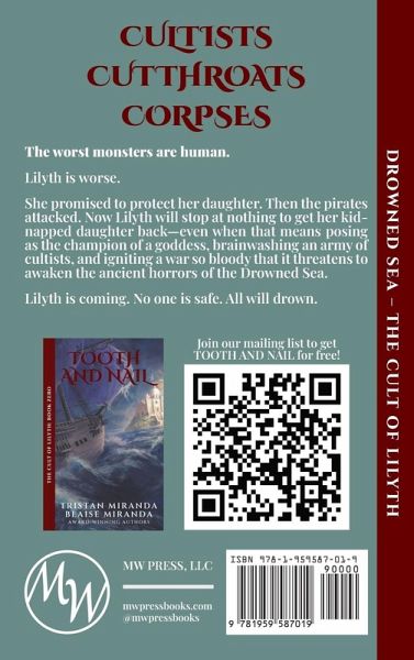 Game of Thrones meets Pirates of the Caribbean in this thrilling tale of war, revenge, and adventure on the high seas! Lilyth the Red, an elite assassin, made a promise to her family. She failed to keep it. Now, she will stop at nothing to hunt down the pirates who wronged her-even posing as the champion of a goddess, brainwashing an army of cultists, and igniting a war so ruthless that it threatens to awaken the ancient horrors of the Drowned Sea. Erin Rose, a street urchin, only ever cared about picking pockets with her father. But that's no longer an option. Alone, the price of survival is costly, paid in flesh and brutality. The only question is whose blood will be on her hands: her own or her newfound friends. First Mate Jameson, a pirate-turned-storyteller, left a life of violence behind him. Or so he'd thought. But life on the sea is crueler than it has ever been. Trapped between sea monsters, cultists, and pirates, Jameson's stories might be his only salvation-and the ruin of the gods. War ravages the Drowned Sea, monsters rise from its depths, and heroes drown in them. In this world where land is sparse and gunpowder rules the sea, only the villains will survive.