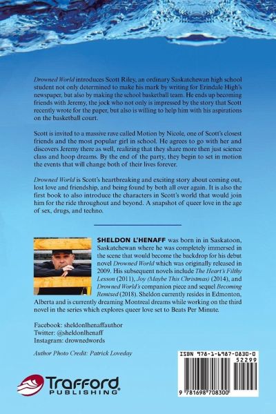 Drowned World introduces Scott Riley, an ordinary Saskatchewan high school student not only determined to make his mark by writing for Erindale High's newspaper, but also by making the school basketball team. He ends up becoming friends with Jeremy, the jock who not only is impressed by the story that Scott recently wrote for the paper, but also is willing to help him with his aspirations on the basketball court. Scott is invited to a massive rave called Motion by Nicole, one of Scott's closest friends and the most popular girl in school. He agrees to go with her and discovers Jeremy there as well, realizing that they share more then just science class and hoop dreams. By the end of the party, they begin to set in motion the events that will change both of their lives forever. Drowned World is Scott's heartbreaking and exciting story about coming out, lost love and friendship, and being found by both all over again. It is also the first book to also introduce the characters in Scott's world that would join him for the ride throughout and beyond. A snapshot of queer love in the age of sex, drugs, and techno.