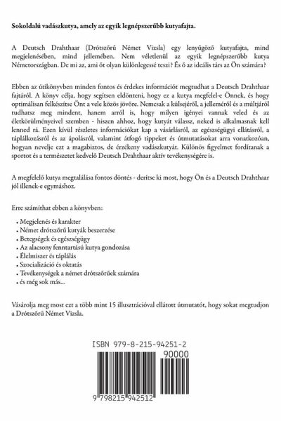 Sokoldalú vadászkutya, amely az egyik legnépszer¿bb kutyafajta. A Deutsch Drahthaar (Drótsz¿r¿ Német Vizsla) egy leny¿göz¿ kutyafajta, mind megjelenésében, mind jellemében. Nem véletlenül az egyik legnépszer¿bb kutya Németországban. De mi az, ami ¿t olyan különlegessé teszi? És ¿ az ideális társ az Ön számára? Ebben az útikönyvben minden fontos és érdekes információt megtudhat a Deutsch Drahthaar fajtáról. A könyv célja, hogy segítsen eldönteni, hogy ez a kutya megfelel-e Önnek, és hogy optimálisan felkészítse Önt a vele közös jöv¿re. Nemcsak a külsejér¿l, a jellemér¿l és a múltjáról tudhatsz meg mindent, hanem arról is, hogy milyen igényei vannak veled és az életkörülményeivel szemben - hiszen ahhoz, hogy kutyát válassz, neked is alkalmasnak kell lenned rá. Ezen kívül részletes információkat kap a vásárlásról, az egészségügyi ellátásról, a táplálkozásról és az ápolásról, valamint átfogó tippeket és útmutatásokat arra vonatkozóan, hogyan nevelje ezt a magabiztos, de érzékeny vadászkutyát. Különös figyelmet fordítanak a sportot és a természetet kedvel¿ Deutsch Drahthaar aktív tevékenységére is. A megfelel¿ kutya megtalálása fontos döntés - derítse ki most, hogy Ön és a Deutsch Drahthaar jól illenek-e egymáshoz. Erre számíthat ebben a könyvben:Megjelenés és karakter Német drótsz¿r¿ kutyák beszerzése Betegségek és egészségügy Az alacsony fenntartású kutya gondozása Élelmiszer és táplálás Szocializáció és oktatás Tevékenységek a német drótsz¿r¿ek számára és még sok más... Vásárolja meg most ezt a több mint 15 illusztrációval ellátott útmutatót, hogy sokat megtudjon a Drótsz¿r¿ Német Vizsla.