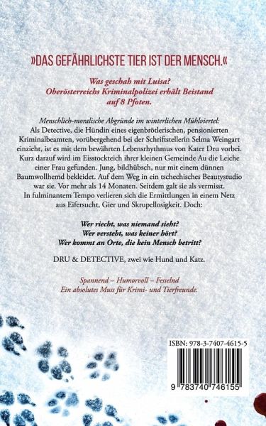 TÖDLICHE SCHÖNHEIT: Spannender & rotzfrecher Auftakt zur neuen Provinzkrimi - Reihe der Kindle Bestseller - Autorin!Die junge Oberösterreicherin Luisa nimmt einen Termin in einem tschechischen Beautystudio wahr, und kehrt nie mehr nach Hause zurück. 14 Monate später wird sie perfekt gestylt im Eisstockteich der winterlichen Mühlviertler Gemeinde Au gefunden. Mit einem einzigen Schönheitsfehler: Sie ist tot.Es mag etwas pietätlos klingen, aber hätte es Luisa nicht gegeben, wäre im beschaulichen Au noch alles beim Alten:Eine Schriftstellerin würde Historienromane schreiben, während sich ihr Kater Dru hauptberuflich durch das Vogelprogramm des Lokalsenders zappt.Ein pensionierter Kapazunder der Kriminologie würde einsam herumschnüffeln,und seine Spaniel-Hündin Detective, davon träumen, ein Deutscher Schäferhund zu sein.Aber es gab Luisa. Und deshalb ist jetzt alles anders.PRESSE- & LESERSTIMMEN:»Eine überaus einfallsreiche, spannende und humorvolle Geschichte!Grims schrieb mit 'Dru & Detective' Krimi über 'Mordsfreunde'« OÖ NACHRICHTEN»Für Krimifans und Tierfreunde ein Must!« BEZIRKSRUNDSCHAU»Intelligente Dialoge, gute Pointen. Das Zusammenspiel zwischen Mensch und Tier in diesem Provinzkrimi ist herzerfrischend! Für Fans von Eberhofer und Kluftinger genauso ansprechend, wie für Freunde der Felidae-Romane.«»Die Kommentare des Katers sind zum Totlachen!«»Ein neuer Regionalkrimi zum Wohlfühlen mit viel Spannung, Lokalorit und einer Extraportion Humor! Freue mich auf die Fortsetzung!»»Humoriger Landkrimi, spannender Kriminalroman, Katzenkrimi, Hundekrimi - diese Buch ist alles in einem. Keine Sekunde Langeweile und jeder Leser kommt auf seine Kosten.»»Selma Weingart und ihr Kater Dru sind meine Lieblinge!»»Kauzig, warmherzig & humorvoll bleibt das Buch stets spannend!«»Exquisite Krimispannung mit Humor und Charme.«»Eloquenz, Kurzweil & Spannung. Grims' neue Wohlfühl-Krimireihe überzeugt.«»Abgründe im Mühlviertel - Spannung bis zur letzten Seite! Für Fans von Rita Falk und Volker Klüpfel .«»Spannung & Wortwitz - ein äußerst gelungener Wohlfühlkrimi!«»Sehr witzig und spannend zugleich - ein Buch, das man nicht weglegen kann.«Ein Kindle Wohlfühlkrimi - Bestseller in den Kategorien ' Krimis mit Katzen und Hunden ', ' Krimikomödie ', ' Humoristisch ', ' Detektivromane ', ' Cosy-Krimis ' und ' Satirische Literarische Belletristik '.Verlags-Top-Titel im Taschenbuchformat im Erscheinungsmonat Dezember 2019.