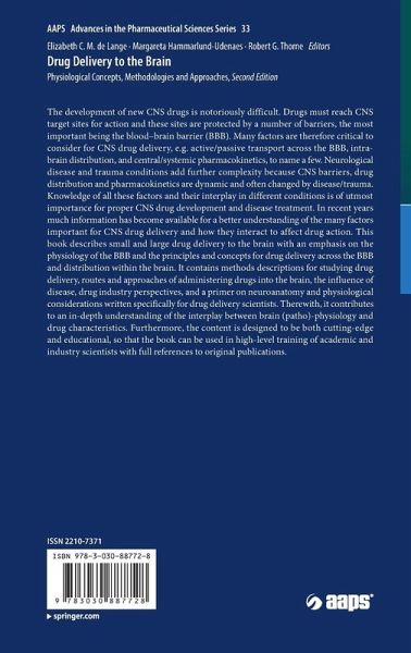 The development of new CNS drugs is notoriously difficult. Drugs must reach CNS target sites for action and these sites are protected by a number of barriers, the most important being the blood-brain barrier (BBB). Many factors are therefore critical to consider for CNS drug delivery, e.g. active/passive transport across the BBB, intra-brain distribution, and central/systemic pharmacokinetics, to name a few. Neurological disease and trauma conditions add further complexity because CNS barriers, drug distribution and pharmacokinetics are dynamic and often changed by disease/trauma. Knowledge of all these factors and their interplay in different conditions is of utmost importance for proper CNS drug development and disease treatment. In recent years much information has become available for a better understanding of the many factors important for CNS drug delivery and how they interact to affect drug action. This book describes small and large drug delivery to the brain with anemphasis on the physiology of the BBB and the principles and concepts for drug delivery across the BBB and distribution within the brain. It contains methods descriptions for studying drug delivery, routes and approaches of administering drugs into the brain, the influence of disease, drug industry perspectives, and a primer on neuroanatomy and physiological considerations written specifically for drug delivery scientists. Therewith, it contributes to an in-depth understanding of the interplay between brain (patho)-physiology and drug characteristics. Furthermore, the content is designed to be both cutting-edge and educational, so that the book can be used in high-level training of academic and industry scientists with full references to original publications.