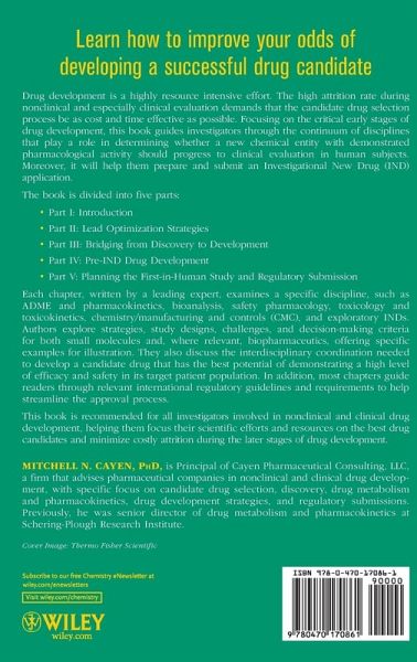 MITCHELL N. CAYEN, PhD, is Principal of Cayen Pharmaceutical Consulting, LLC, a firm that advises pharmaceutical companies in nonclinical and clinical drug develop-ment, with specific focus on candidate drug selection, discovery, drug metabolism and pharmacokinetics, drug development strategies, and regulatory submissions. Previously, he was senior director of drug metabolism and pharmacokinetics at Schering-Plough Research Institute.