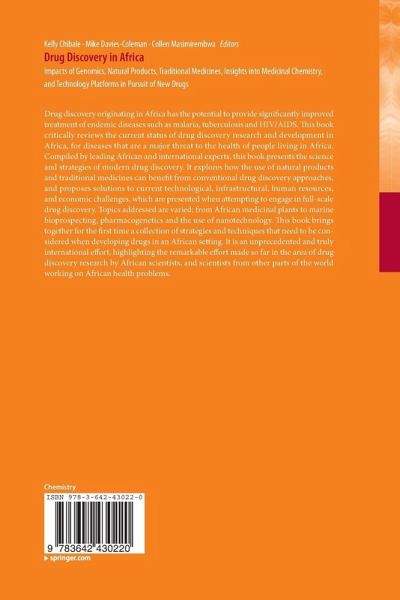 Drug discovery originating in Africa has the potential to provide significantly improved treatment of endemic diseases such as malaria, tuberculosis and HIV/AIDS. This book critically reviews the current status of drug discovery research and development in Africa, for diseases that are a major threat to the health of people living in Africa. Compiled by leading African and international experts, this book presents the science and strategies of modern drug discovery. It explores how the use of natural products and traditional medicines can benefit from conventional drug discovery approaches, and proposes solutions to current technological, infrastructural, human resources, and economic challenges, which are presented when attempting to engage in full-scale drug discovery. Topics addressed are varied; from African medicinal plants to marine bioprospecting, pharmacogenetics and the use of nanotechnology. This book brings together for the first time a collection of strategies and techniques that need to be considered when developing drugs in an African setting. It is an unprecedented and truly international effort, highlighting the remarkable effort made so far in the area of drug discovery research by African scientists, and scientists from other parts of the world working on African health problems.