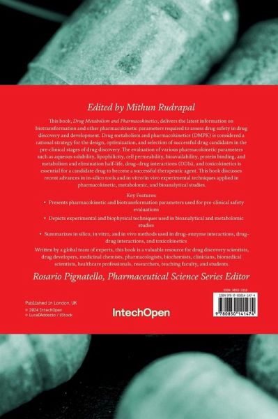 This book, Drug Metabolism and Pharmacokinetics, delivers the latest information on biotransformation and other pharmacokinetic parameters required to assess drug safety in drug discovery and development. Drug metabolism and pharmacokinetics (DMPK) is considered a rational strategy for the design, optimization, and selection of successful drug candidates in the pre-clinical stages of drug discovery. The evaluation of various pharmacokinetic parameters such as aqueous solubility, lipophilicity, cell permeability, bioavailability, protein binding, and metabolism and elimination half-life, drug¿drug interactions (DDIs), and toxicokinetics is essential for a candidate drug to become a successful therapeutic agent. This book discusses recent advances in in-silico tools and in vitro/in vivo experimental techniques applied in pharmacokinetic, metabolomic, and bioanalytical studies. Key Features: ¿ Presents pharmacokinetic and biotransformation parameters used for pre-clinical safety evaluations ¿ Depicts experimental and biophysical techniques used in bioanalytical and metabolomic studies ¿ Summarizes in silico, in vitro, and in vivo methods used in drug¿enzyme interactions, drug¿ drug interactions, and toxicokinetics Written by a global team of experts, this book is a valuable resource for drug discovery scientists, drug developers, medicinal chemists, pharmacologists, biochemists, clinicians, biomedical scientists, healthcare professionals, researchers, teaching faculty, and students.