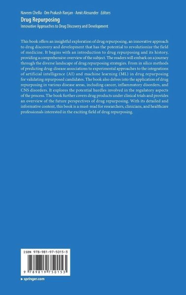 Chapter 1. Drug repurposing: History, Significance, Benefits, Approaches and Challenges.- Chapter 2. Methodologies Adopted in Drug Repurposing.- Chapter 3. In silico methods used in drug repurposing.- Chapter 4. Role of artificial and machine learning in drug repurposing.- Chapter 5. Drug repurposing in cancer therapy.- Chapter 6. Drug repurposing in inflammatory disorders.- Chapter 7. Drug repurposing in CNS disorders.- Chapter 8. Reshaping the Therapeutic Landscape: Drug Repurposing for Emerging Infectious Diseases and Rare Diseases.- Chapter 9. Clinical trials on repurposed drugs: an overview.- Chapter 10. Intellectual Property Rights and Regulatory Considerations Throughout Drug Repurposing.- Chapter 11. Redirection to the Drug Discovery: Antidiabetic Drugs Repurposing in Cancer.