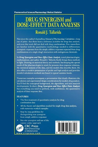 Not since this author's bestselling Manual of Pharmacologic Calculation has there been an available reference for drug data analysis. Incorporating the most relevant parts of that work, Drug Synergism and Dose-Effect Data Analysis focuses on drug combinations and all the quantitative analyses needed to analyze drug combination dose-effect data and to design experiments with two or more compounds. The book contains the statistical methods, the theory, and the computation algorithms needed to analyze single and combination drug data. Numerous examples accompany a presentation that illustrates the calculations and experimental design considerations for modern drug analysis.