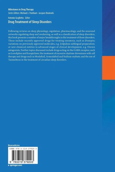 "This book explores major breakthroughs in the drug treatment of sleep disorders. ... The intended audience is scientists, clinicians, and drug developers. ... With its specific aim of providing an extensive update on drug treatment for sleep disorders, this book is helpful contribution to sleep medicine." (M. Isabel L. Crisostomo, Doody's Book Reviews, July, 2015)