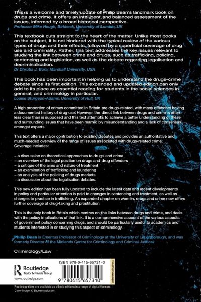 A high proportion of crimes committed in Britain are drugs-related, with many offenders having a documented history of drug use. However, the direct link between drugs and crime is often less clear than is supposed and this text attempts to achieve a better understanding of these and surrounding issues that have been marred by misunderstanding and a lack of consensus amongst experts. This text offers a major contribution to existing debates and provides an authoritative and much-needed overview of the range of issues associated with drugs-related crime. Coverage includes: a discussion on theoretical approaches to drugs and crime, an overview of the legal position on drugs and drug offenders, a critique of the aims and nature of treatment, an examination of trafficking and laundering, an analysis of the policing of drugs markets, a discussion about the legalisation debates. This new edition has been fully updated to include the latest data and recent developments in policy and particular attention is paid to changes in sentencing and treatment, as well as changes to practice in trafficking. An expanded chapter on women, drugs and crime now offers further coverage of drug-taking and prostitution. This is the only book in Britain which centres on the links between drugs and crime, and deals with the policy implications of that link. It is a comprehensive account of the various aspects of Government policy concerning drugs, and should be particularly useful to academics and students interested in or studying this aspect of criminology.