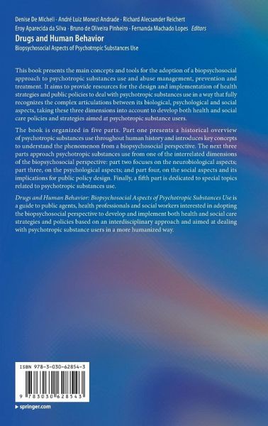 Drugs and Human Behavior: Biopsychosocial Aspects of Psychotropic Substances Use is a guide to public agents, health professionals and social workers interested in adopting the biopsychosocial perspective to develop and implement both health and social care strategies and policies based on an interdisciplinary approach and aimed at dealing with psychotropic substance users in a more humanized way.