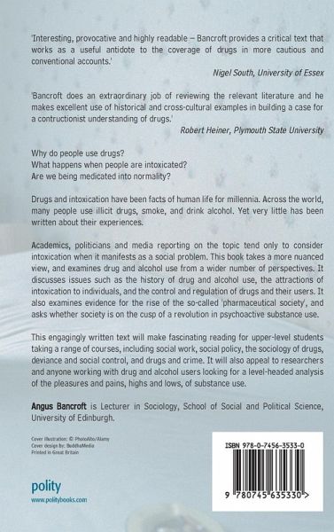 * Why do people use drugs? * What happens when people are intoxicated? * Are we being medicated into normality? Drugs and intoxication have been facts of human life for millennia. Across the world, many people use illicit drugs, smoke, and drink alcohol. Yet very little has been written about their experiences. Academics, politicians and media reporting on the topic tend only to consider intoxication when it manifests as a social problem. This book takes a more nuanced view, and examines drug and alcohol use from a wider number of perspectives. It discusses issues such as the history of drug and alcohol use, the attractions of intoxication to individuals, and the control and regulation of drugs and their users. It also examines evidence for the rise of the so-called 'pharmaceutical society', and asks whether society is on the cusp of a revolution in psychoactive substance use. This engagingly written text will make fascinating reading for upper-level students taking a range of courses, including social work, social policy, the sociology of drugs, deviance and social control, and drugs and crime. It will also appeal to researchers and anyone working with drug and alcohol users looking for a level-headed analysis of the pleasures and pains, highs and lows, of substance use.
