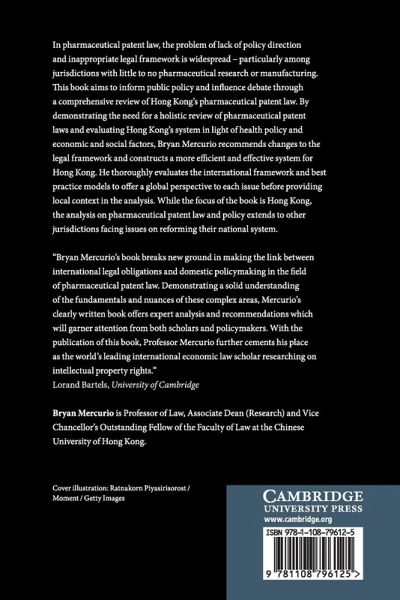 In pharmaceutical patent law, the problem of lack of policy direction and inappropriate legal framework is widespread - particularly among jurisdictions with little to no pharmaceutical research or manufacturing. This book aims to inform public policy and influence debate through a comprehensive review of Hong Kong's pharmaceutical patent law. By demonstrating the need for a holistic review of pharmaceutical patent laws and evaluating Hong Kong's system in light of health policy, economic and social factors, Bryan Mercurio recommends changes to the legal framework and constructs a more efficient and effective system for Hong Kong. He thoroughly evaluates the international framework and best practice models to offer a global perspective to each issue before providing local context in the analysis. While the focus of the book is Hong Kong, the analysis on pharmaceutical patent law and policy extends to other jurisdictions facing issues on reforming their national system.