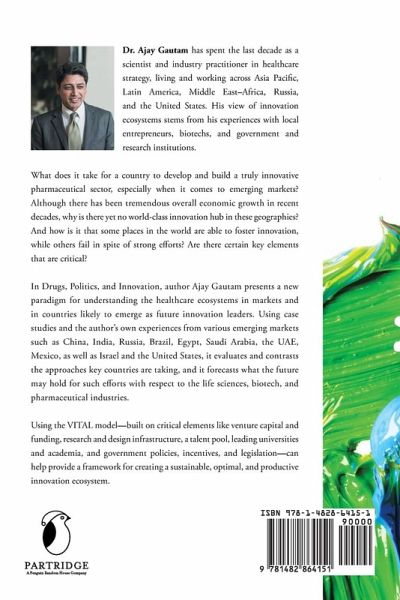 What does it take for a country to develop and build a truly innovative pharmaceutical sector, especially when it comes to emerging markets? Although there has been tremendous overall economic growth in recent decades, why is there yet no world-class innovation hub in these geographies? And how is it that some places in the world are able to foster innovation, while others fail in spite of strong efforts? Are there certain key elements that are critical? In Drugs, Politics, and Innovation, author Ajay Gautam presents a new paradigm for understanding the healthcare ecosystems in markets and in countries likely to emerge as future innovation leaders. Using case studies and the author's own experiences from various emerging markets such as China, India, Russia, Brazil, Egypt, Saudi Arabia, the UAE, Mexico, as well as Israel and the United States, it evaluates and contrasts the approaches key countries are taking, and it forecasts what the future may hold for such efforts with respect to the life sciences, biotech, and pharmaceutical industries. Using the VITAL model-built on critical elements like venture capital and funding, research and design infrastructure, a talent pool, leading universities and academia, and government policies, incentives, and legislation-can help provide a framework for creating a sustainable, optimal, and productive innovation ecosystem.