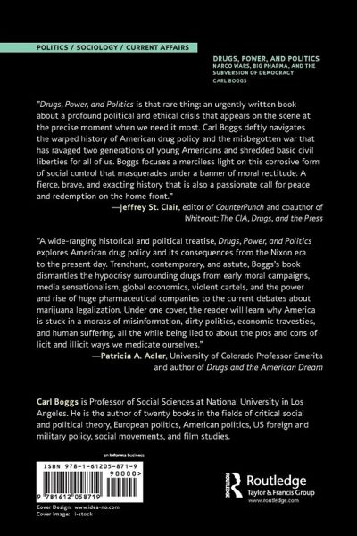 "Drugs, Power, and Politics is that rare thing: an urgently written book about a profound political and ethical crisis that appears on the scene at the precise moment when we need it most. Carl Boggs deftly navigates the warped history of American drug policy and the misbegotten war that has ravaged two generations of young Americans and shredded basic civil liberties for all of us. Boggs focuses a merciless light on this corrosive form of social control that masquerades under a banner of moral rectitude. A fierce, brave, and exacting history that is also a passionate call for peace and redemption on the home front."