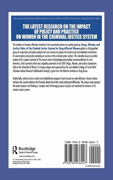 A unique interdisciplinary exploration of a pressing social issue The numbers of women offenders involved in the correctional system are quickly growing. Drugs, Women, and Justice: Roles of the Criminal Justice System for Drug-Affected Women gathers a distinguished group of researchers and policy analysts into one volume to explore the broad social and individual implications of current policy and practice pertaining to women in the criminal justice system. This valuable resource provides readers with a superb overview of the current state of knowledge and provides recommendations for new directions. Each top-notch chapter was originally presented at the 2005 Drugs, Women, and Justice Symposium, held on the University of Illinois at Chicago campus and sponsored by the Jane Addams College of Social Work Substance Abuse Research Collaboration through a grant from the National Institute on Drug Abuse. Traditionally, criminal justice studies and rehabilitation programs have focused on male offenders. Recent studies reinforce the current evidence that females should have their needs addressed differently. This unique book presents the latest research and thinking in complex and still emerging areas of policy and treatment for women in the criminal justice system. Topics in Drugs, Women, and Justice: Roles of the Criminal Justice System for Drug-Affected Women include: characteristics of drug-involved women in the criminal justice system the negative impact on families of punitive drug laws and child welfare legislation assessing and managing the service needs of children whose mothers have been arrested influences of feelings of isolation on the course of rehabilitation demographic differences between women in drug treatment and drug-involved women in the criminal justice system service needs of women released from prison a program developed for women who have survived traumatic violence, working in the street economy, and the criminal justice system the direct and indirect impact of mass incarceration on women and more Drugs, Women, and Justice: Roles of the Criminal Justice System for Drug-Affected Women is essential reading for researchers, criminologists, sociologists, social workers, psychologists, clinicians, feminists, and policymakers in the areas of social welfare, criminal justice, and drug policy.