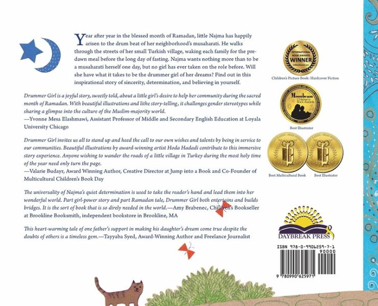 "Year after year in the blessed month of Ramadan, little Najma has happily arisen to the drum beat of her neighborhood's musaharati. He walks through the streets of her small Turkish village, waking each family for the pre-dawn meal before the long day of fasting. Najma wants nothing more than to be a musaharati herself one day, but no girl has ever taken on the role before. Will she have what it takes to be the drummer girl of her dreams? Find out in this inspirational story of sincerity, determination, and believing in yourself"--Cover page [4]