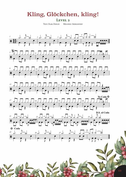 Weihnachten am Schlagzeug Vol. 3 beinhaltet 4 Playalongs in verschiedenen Stilrichtungen! ¿Es ist für uns eine Zeit angekommen¿ bedient sich der Surfmusik, ¿Fröhliche Weihnacht überall¿ erinnert an Bands wie Sepultura mit typischem Tribalvibe. Bei ¿Jauchzet, frohlocket¿ regiert zu Beginn das bekannte Paukenthema und endet im fetten Gitarrengewitter. Kling Glöckchen, kling¿ hingegen kommt im Soundgewand der 80ziger daher und lässt Bands wie ¿Status Quöoder Gesangswunder wie Jennifer Rush durchklingen. Ein kleines bisschen ¿Last Christmas¿ hier und da lässt die Melodie erahnen. Ihr seht, diese Ausgabe bietet eine breite Palette an Stilrichtungen und gibt euch die Möglichkeit viele Stimmungen zu transportieren! In diesem Sinne, lasst es krachen unter¿m Weihnachtsbaum! Euer Tobias