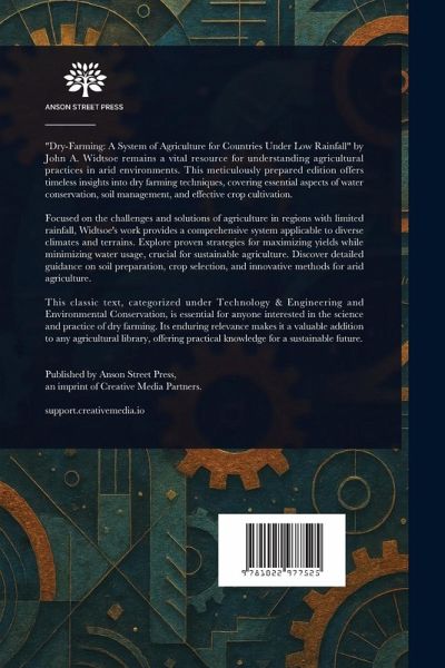 "Dry-Farming: A System of Agriculture for Countries Under Low Rainfall" by John A. Widtsoe remains a vital resource for understanding agricultural practices in arid environments. This meticulously prepared edition offers timeless insights into dry farming techniques, covering essential aspects of water conservation, soil management, and effective crop cultivation. Focused on the challenges and solutions of agriculture in regions with limited rainfall, Widtsoe's work provides a comprehensive system applicable to diverse climates and terrains. Explore proven strategies for maximizing yields while minimizing water usage, crucial for sustainable agriculture. Discover detailed guidance on soil preparation, crop selection, and innovative methods for arid agriculture. This classic text, categorized under Technology & Engineering and Environmental Conservation, is essential for anyone interested in the science and practice of dry farming. Its enduring relevance makes it a valuable addition to any agricultural library, offering practical knowledge for a sustainable future. This work has been selected by scholars as being culturally important, and is part of the knowledge base of civilization as we know it. This work is in the public domain in the United States of America, and possibly other nations. Within the United States, you may freely copy and distribute this work, as no entity (individual or corporate) has a copyright on the body of the work. Scholars believe, and we concur, that this work is important enough to be preserved, reproduced, and made generally available to the public. We appreciate your support of the preservation process, and thank you for being an important part of keeping this knowledge alive and relevant.