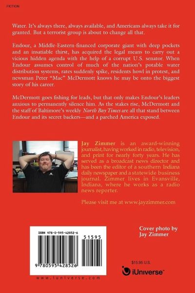 Water. It's always there, always available, and Americans always take it for granted. But a terrorist group is about to change all that. Endour, a Middle-Eastern-financed corporate giant with deep pockets and an insatiable thirst, has acquired the legal means to carry out a vicious hidden agenda with the help of a corrupt U.S. senator. When Endour assumes control of much of the nation's potable water distribution systems, rates suddenly spike, residents howl in protest, and newsman Peter "Mac" McDermott knows he may be onto the biggest story of his career. McDermott goes fishing for leads, but that only makes Endour's leaders anxious to permanently silence him. As the stakes rise, McDermott and the staff of Baltimore's weekly North Bay Times are all that stand between Endour and its secret backers-and a parched America exposed.