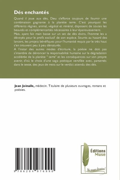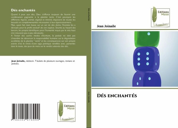 Quand il joue aux dés, Dieu s'efforce toujours de fournir une combinaison gagnante à la planète terre. C'est pourquoi les différents règnes, animal, végétal et minéral, disposent de toutes les beautés et complémentarités nécessaires à leur épanouissement.Mais, ayant fait main basse sur un set de dés divins, l'homme les a dévoyés pour le profit exclusif de son espèce. Soumis au hasard des lancers, les projets bénéfiques pour l'humanité requis par le très haut s'en trouvent peu à peu dénaturés.A l'instar des autres modes d'écriture, la poésie ne doit pas s'interdire de dénoncer la responsabilité humaine sur la dégradation accélérée de la planète " terre" et les conséquences sur son propre avenir, d'où le choix d'une saga poétique versifiée avec, parsemés dans le texte, des jeux de mots sur le verdict attendu des dés.